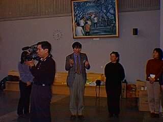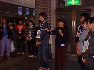 ボランティア(学生さん達)の人達にスタッフが激励の