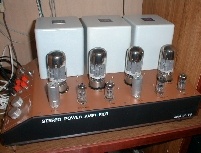 | この装置を完成しても、沼田氏は音の追求には余念がありません 管球式アンプを1台1台接続を変えては、音質改善を行っています |
