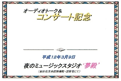 このコンサートには東京からMclntosh CLUBの(松本 純氏)を招いてのオーディオ評価や