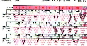 女性同士でも3ゲームでハンデイ+10点づつあげます。