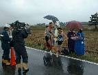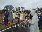 | 2区中継地点でのタスキを 待つ選手達(仙台向山高) (中央)と白石高校(左) |