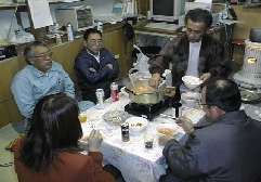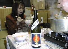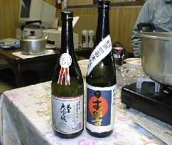 | 本日の日本の銘酒大吟醸酒と料理の達人鍋は 「大吟醸酒 蔵王」と「日本響」 山本先生提供 「チムキ鍋」は森先生の手造りの提供 鍋会場は島田商店様の提供