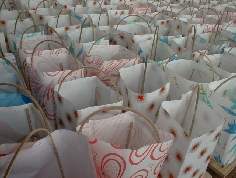 | 荒浜の町内で1世帯3個の「流灯切り子灯ろう」を制作して鳥の海に流した。亘理町荒浜は、 亘理漁業協同組合の船員が海で事故に合い消息を絶った家族など 無くなった家族の御供養を込めた灯ろうです。 | |