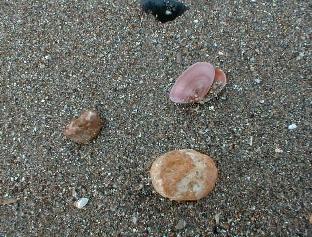 こうして海岸を注意深く観察してみると、ゴミの間に混じって実にさまざまな物が目に入ってきます。見慣れない型のビンや陶磁器 さまざまな種類の貝殻や海藻、サンゴのかけらなどもあります。台風の後などには、魚や鳥の死骸も打ち上がったりします。この他 にも、植物の種子が落ちていたり、芽生えていたりすることもあります。背後の植生に同一種が存在しなければ、別の場所から流 れ着いたことが考えられます。 このような中から気に入った物を拾い集めたり、芸術作品を創り出す喜びもあり、子どもからお年寄りまで楽しむことができます。 今年の夏休みは天候に恵まれず、海水浴への人出は昨年の半分程度に止まった所もあるようです。しかし、ビーチコーミングは、 寄せては返す波の音を聞きながら浜辺で「宝探しにぜひ挑戦してみて下さい。 | |||||||||