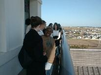 | 荒浜海岸で一緒に撮影 | 悠里館前でのALTの皆さん | 亘理町「悠里館」の見学 |